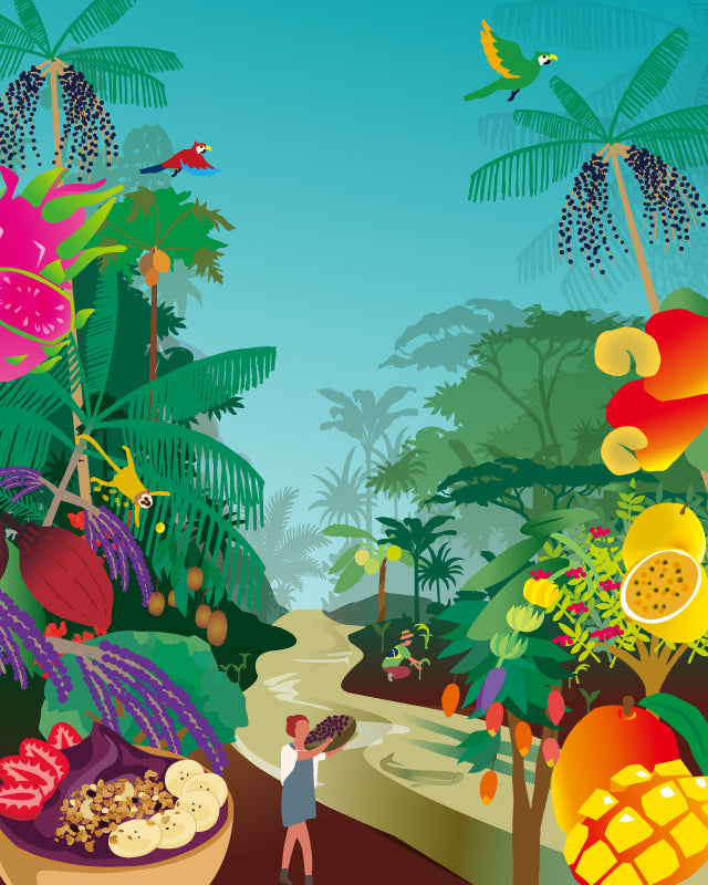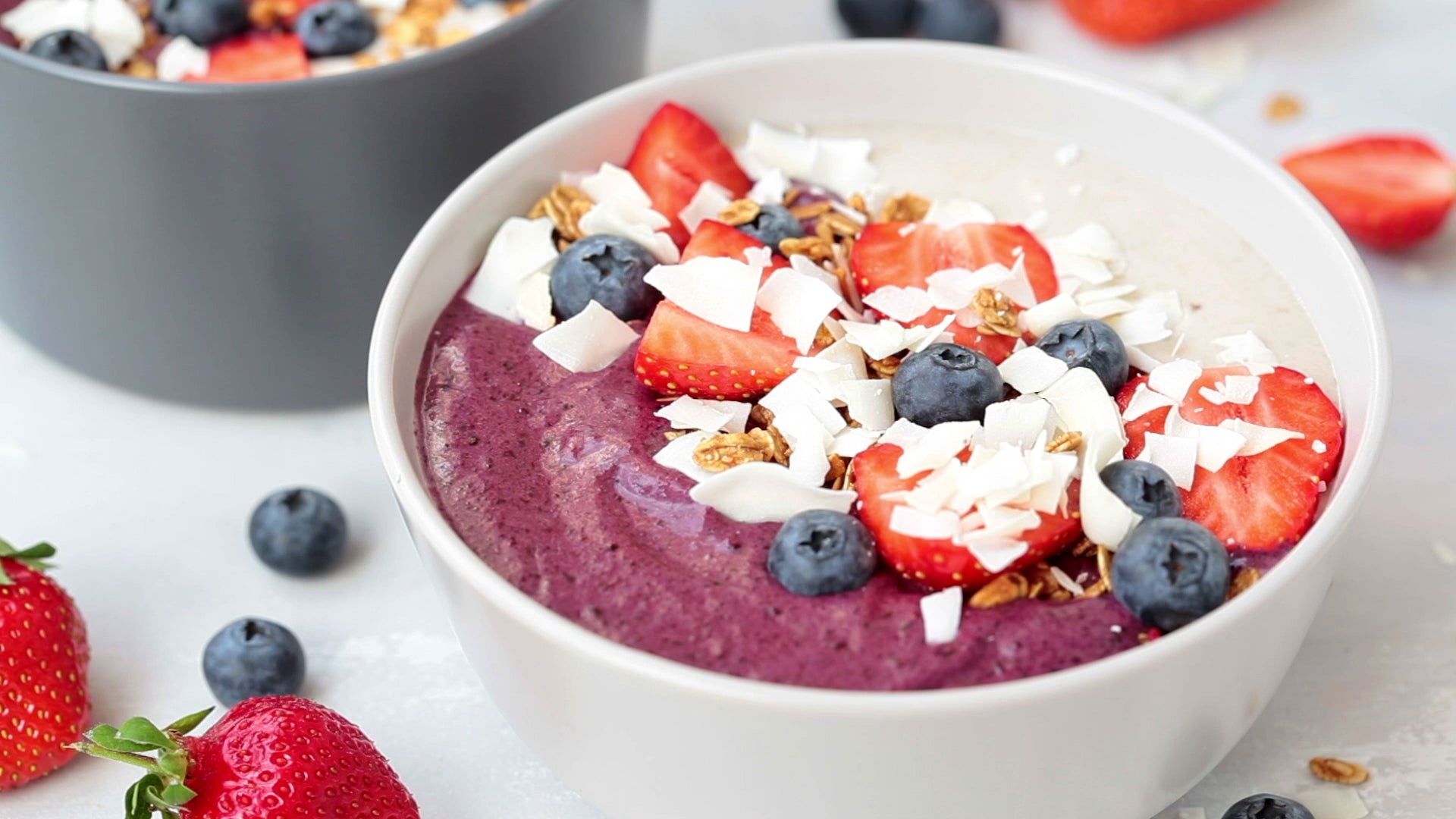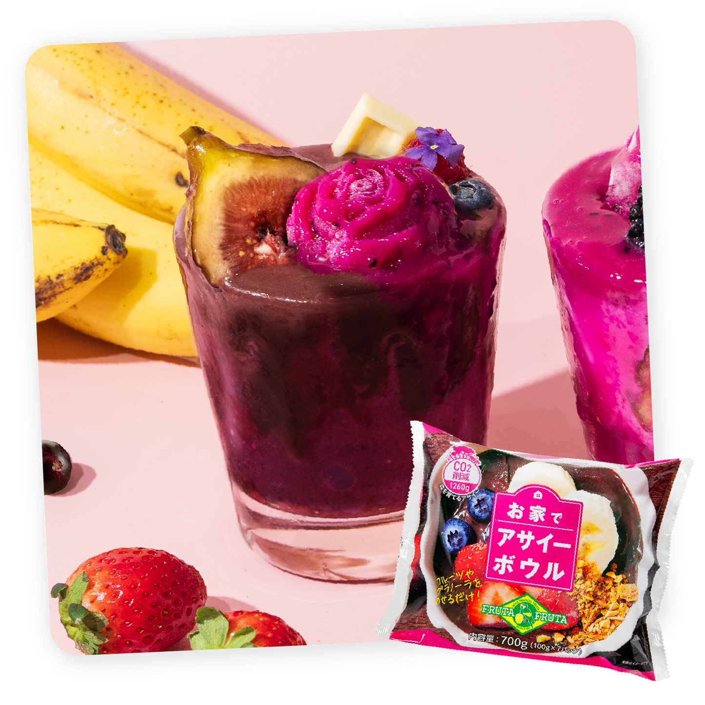 ミキサーなしで、食べたい時に、すぐにアサイーボウル!あらかじめバナナやストロベリーなどのフルーツがミックスされた冷凍ミックスベース。