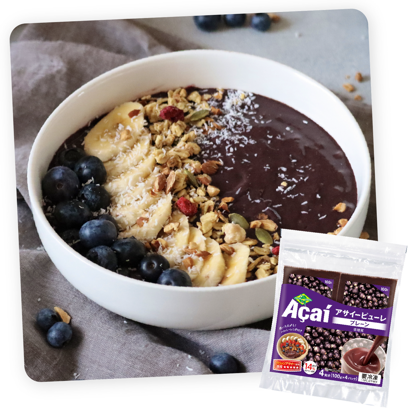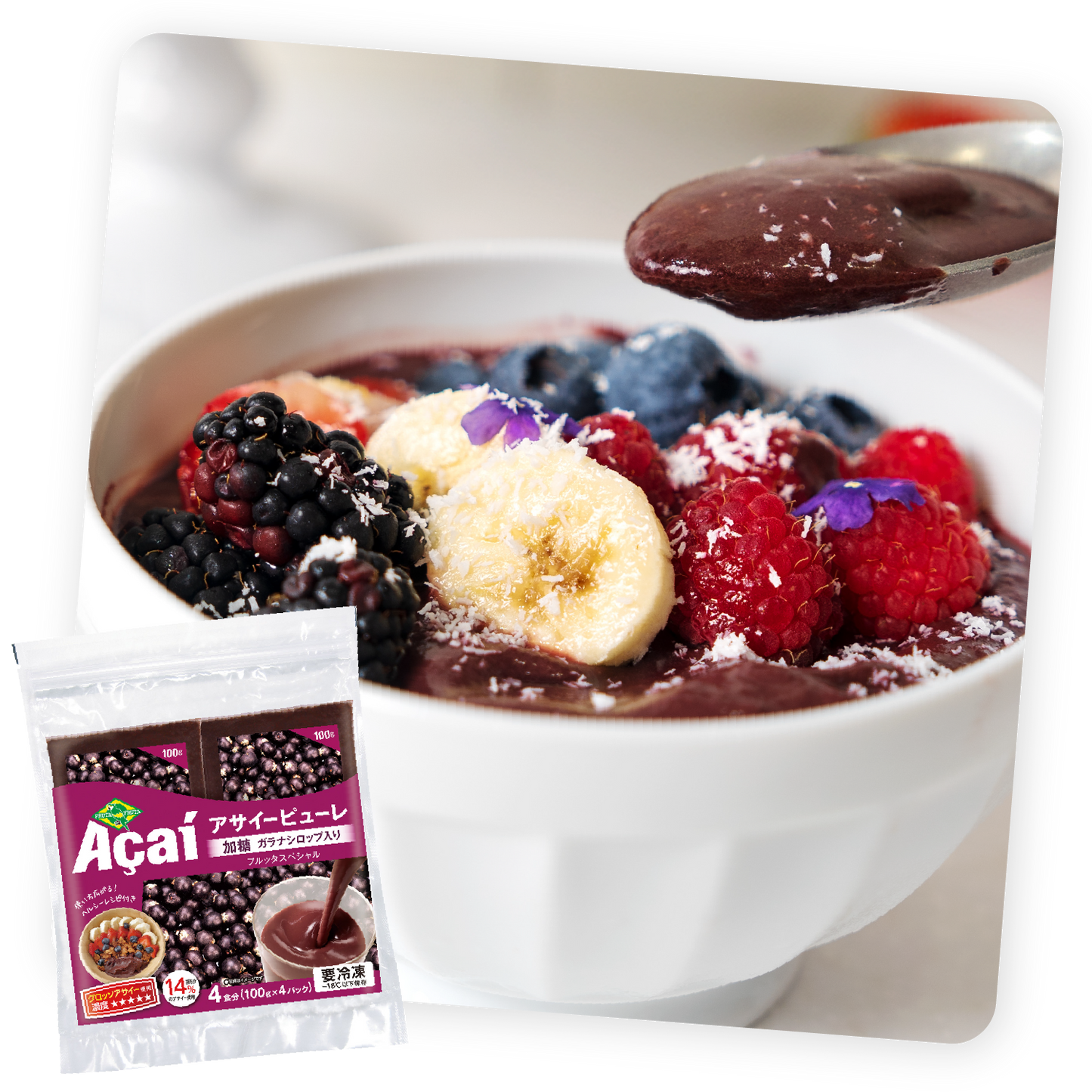 固形分14%の高濃度なアサイーにガラナシロップで甘味を加えた加糖タイプ。アサイーボウルやスムージーを作るのにおすすめ。
